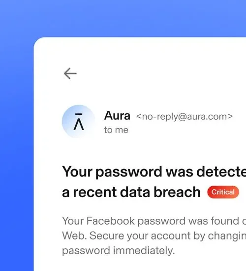 Aura constantly monitors the dark web and data breach databases for your leaked credentials. If your email or password is found, youโll get an alert.